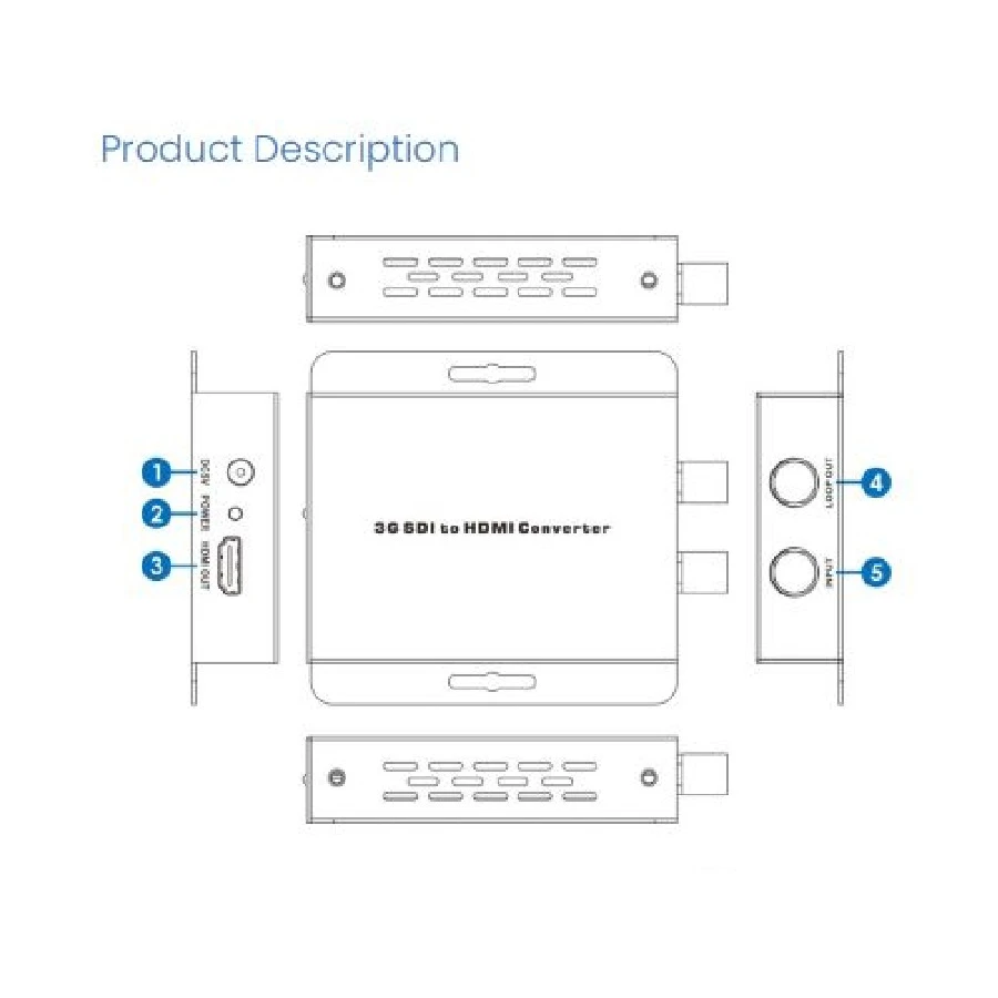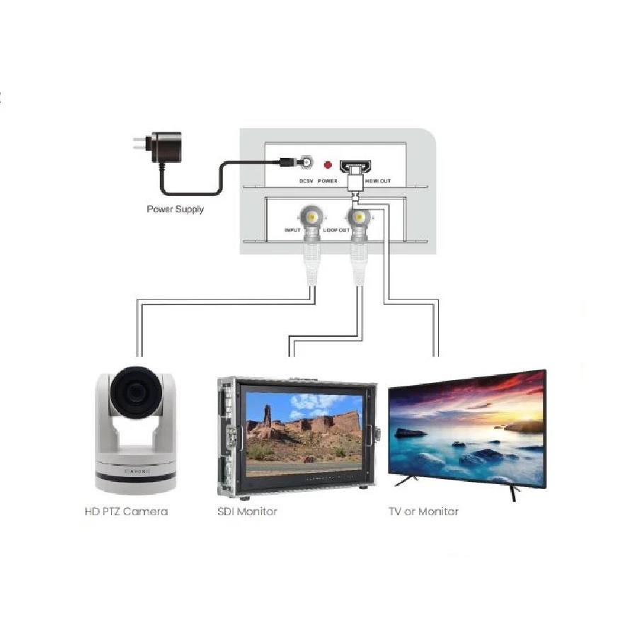 Преобразует сигналы SD-SDI, HD-SDI и 3G-SDI в HDMI до 1080p 60 fps. Видео разрешение: 480i, 576i, 720p (50/59.94/60), 1080i (50/59.94/60), 1080p (23.98/24/25/29.97/30/50/59.94/60).