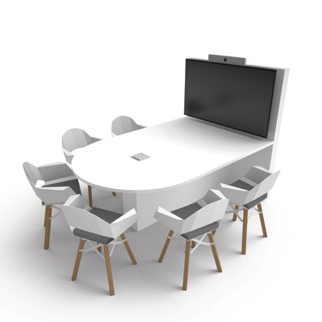 SVP-MXR представляет собой компактное переговорное решение для рабочих групп численностью до 6-ти человек. Рабочее пространство полностью адаптировано для установки систем видеоконференцсвязи, которые могут существенно расширить возможности данного решения. В состав системы видеоконференцсвязи могут входить: монитор с диагональю от 32 до 55 дюймов и креплением Vesa 600 x 400 мм, камера, центральное оборудование.