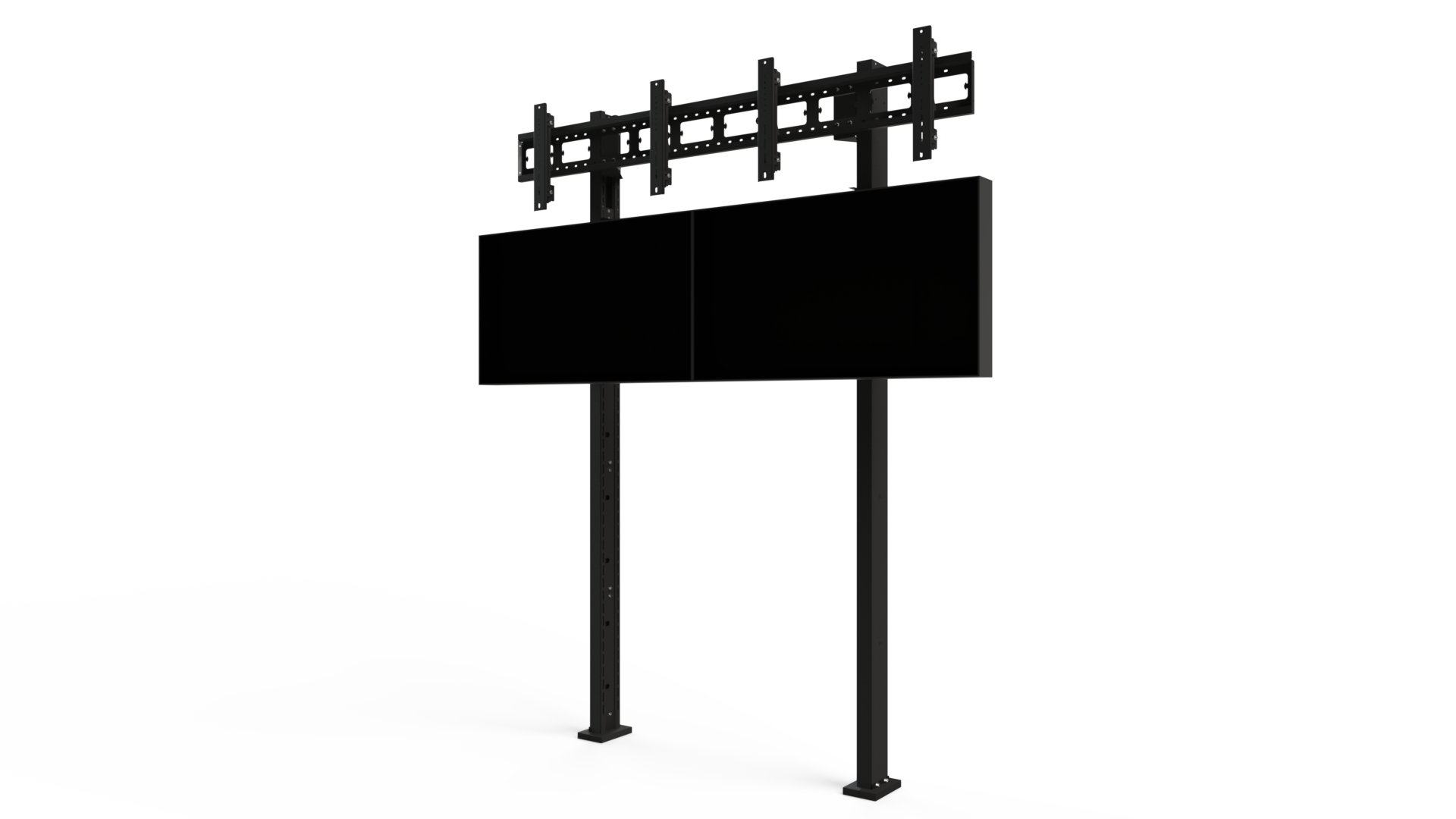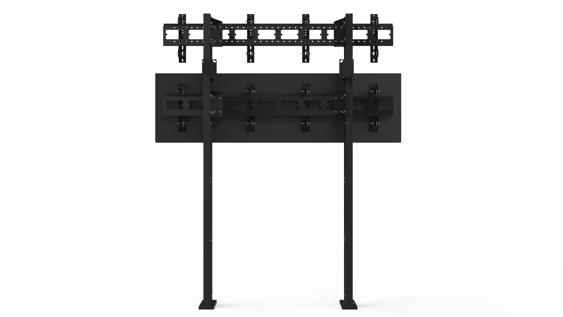 Напольно-настенная стойка с «PUSH»-кронштейнами - стационарный каркас с возможностью непрерывной регулировки высоты кронштейнов. Оснащен напольными и настенными креплениями. Являются комплектом для построения видеостен в случаях, когда невозможно применять только настенное крепление. Основное назначение комплекта - жесткое стационарное подвешивание видеопанелей с закреплением стойки на полу и на стене. «PUSH»-особенность кронштейнов обеспечивает легкий доступ к разъемам панели в условиях стесненного монтажа.