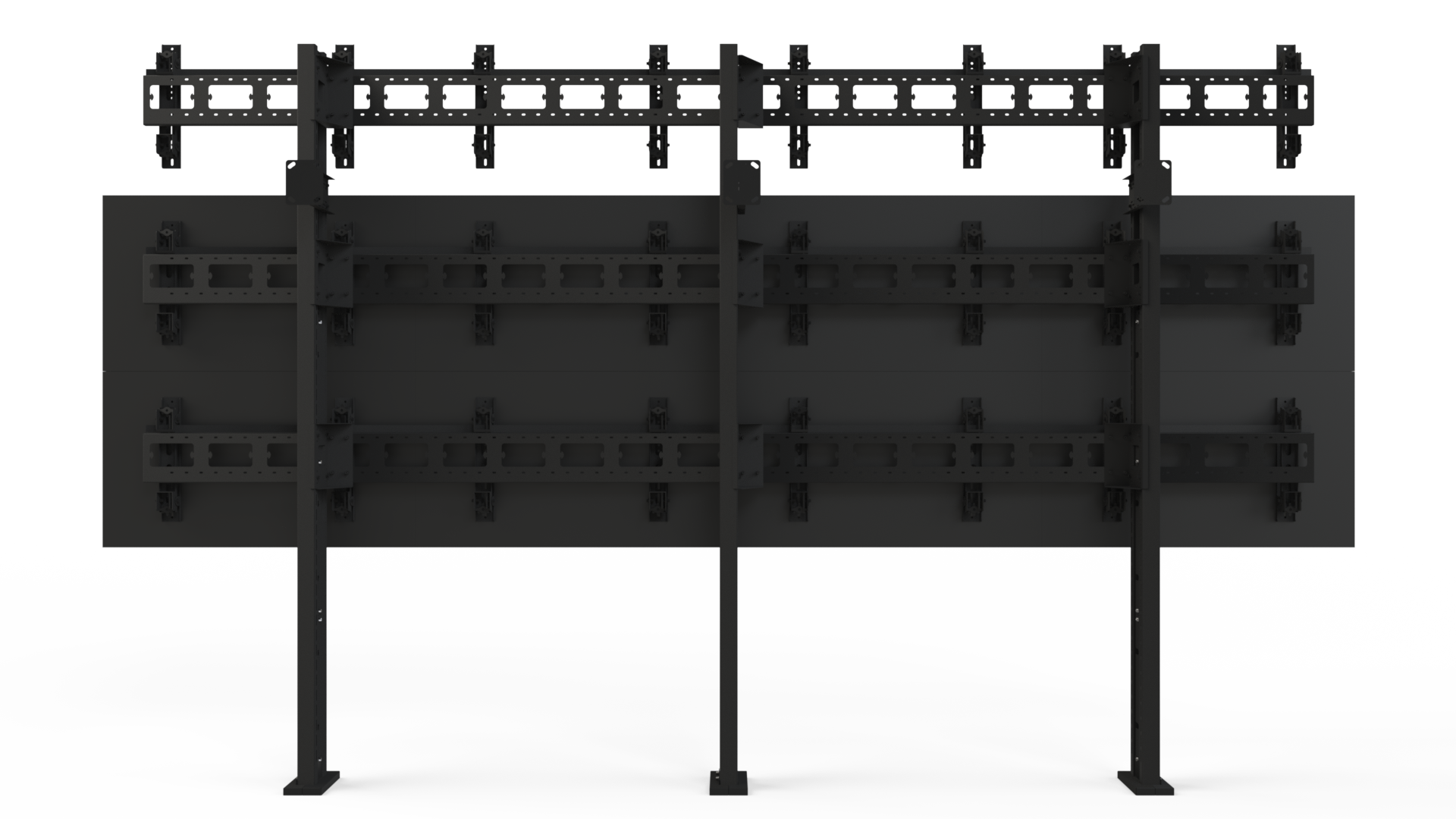 Напольно-настенная стойка с «PUSH»-кронштейнами - стационарный каркас с возможностью непрерывной регулировки высоты кронштейнов. Оснащен напольными и настенными креплениями. Являются комплектом для построения видеостен в случаях, когда невозможно применять только настенное крепление. Основное назначение комплекта - жесткое стационарное подвешивание видеопанелей с закреплением стойки на полу и на стене. «PUSH»-особенность кронштейнов обеспечивает легкий доступ к разъемам панели в условиях стесненного монтажа.