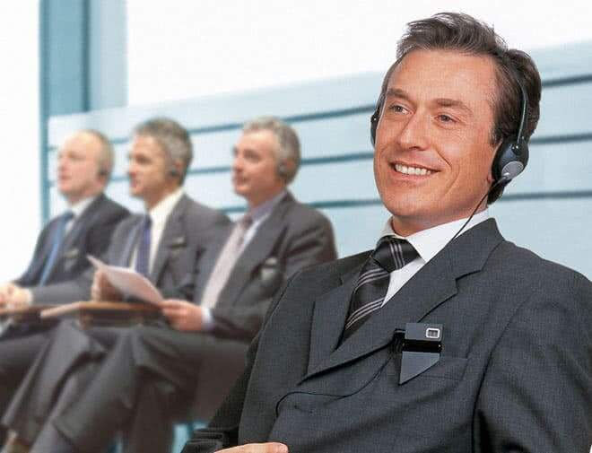 Приемник имеет стильный плоский дизайн, предназначен для ношения во внутреннем кармане пиджака, позволяет слышать через наушники перевод, а также имеет удобную клипсу для фиксации.