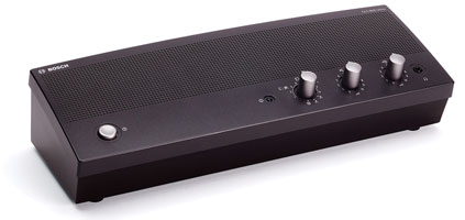 - Регулятор громкости громкоговорителей для установки уровня громкости громкоговорителей пультов участника. Этот регулятор позволяет также установить максимальный уровень громкости для выхода наушников устройств ввода и пульта управления.