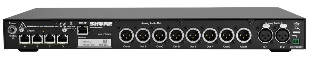 Контроллер обеспечивает питание и управление конференц-устройствами, аналоговые аудиовходы и аудиовыходы для внешнего оборудования и Web-браузер для удаленного управления системой. Для управления в каждой системе необходимо предусмотреть один блок управления CCU.