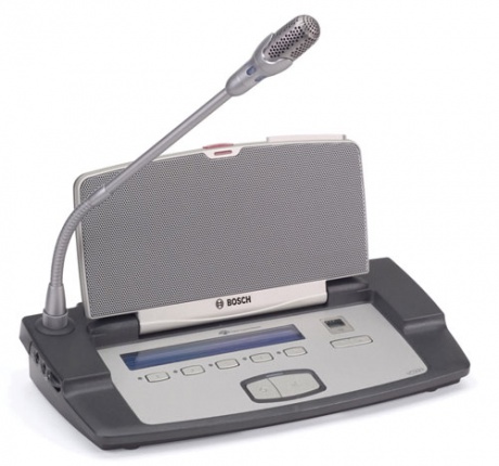Полнофункциональный пульт DCN-CONFF для конференций аналогичен пульту для конференций с переключателем каналов, но имеет также устройство чтения чип-карт и графический дисплей с подсветкой. После ввода чип-карты в устройство чтения карт на графический ЖК-дисплей автоматически выводится относящаяся к пользователю информация на языке, указанном на чип-карте делегата. Графический ЖК-дисплей имеет постоянную подсветку и может отображать сложные символы алфавитов европейских языков или систем иероглифического письма, например для китайского языка. Выбор каналов автоматически ограничен количеством доступных языковых каналов. Плоский динамик обладает превосходными акустическими свойствами и минимальной обратной связью, что позволяет повысить воспринимаемость речи. Кроме того, динамик можно складывать.
