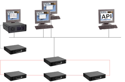 Стороннее приложение подключается к серверу ПО для конференций DCN SW в качестве клиента также, как и приложения для настройки и эксплуатации DCN SW. Все изменения, внесенные через DCN SWAPI, сразу применяются к конфигурации собрания и текущего собрания. Все изменения, внесенные в конфигурацию или управляющие данные проводимого в данный момент собрания, немедленно применяются к рабочему состоянию системы.