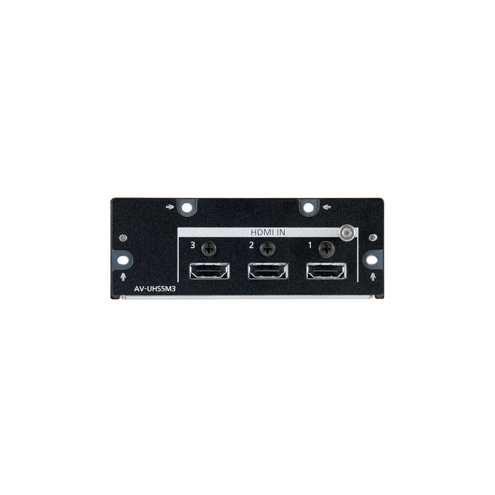 Карта расширения HDMI 2.0 Input AV-UHSM3G добавляет 3 HDMI 2.0 входа для подачи видео в HD или 4K разрешении на ваш профессиональный видеомикшер для прямых трансляций AV-UHS500. В видеомикшер AV-UHS500 можно установить одну или две таких карты.