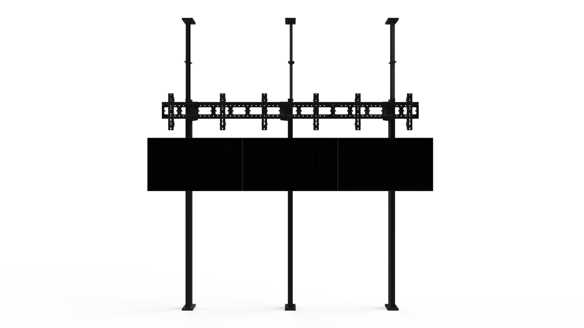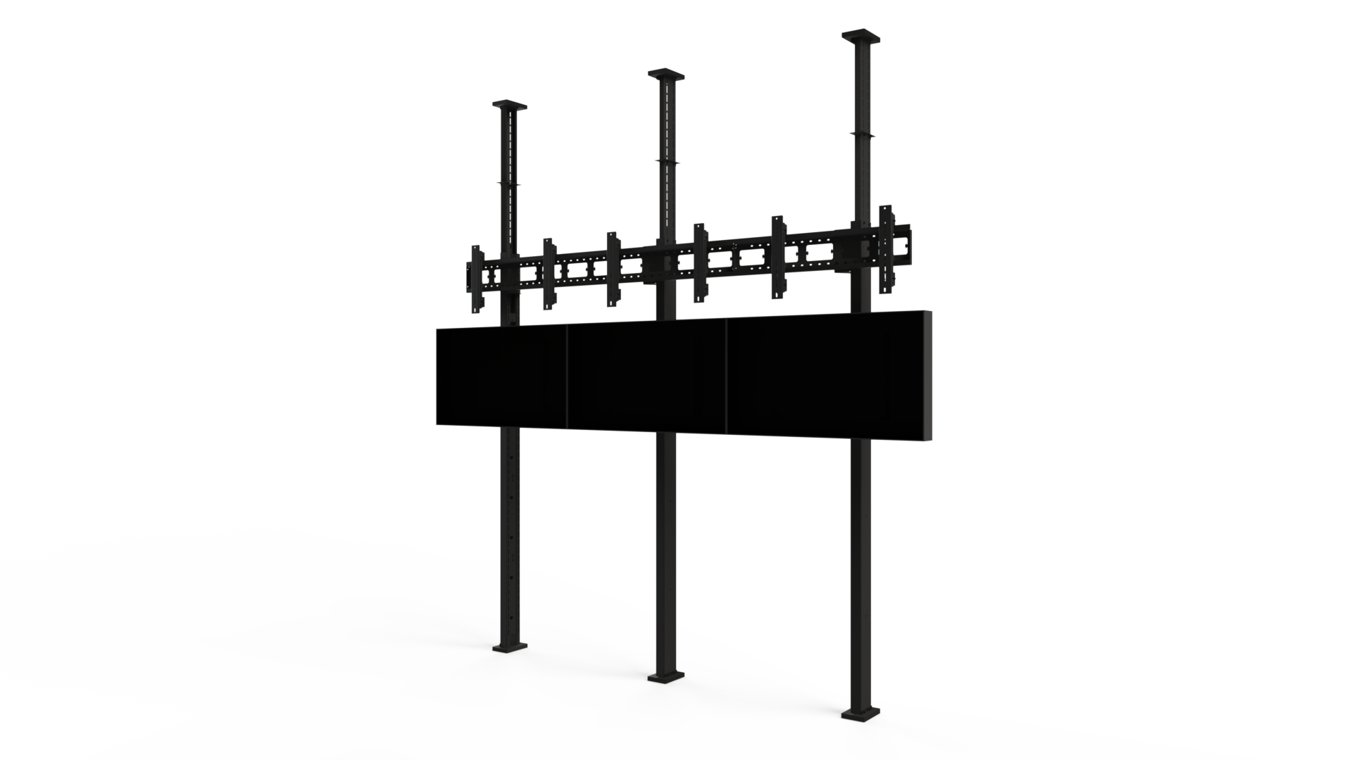 Стойка для видеостен «АРМЕР» оснащена распорными креплениями и предусматривает возможность непрерывного регулирования высоты кронштейнов. Напольно-потолочный каркас является комплектом для построения видеостен в случаях, когда необходимо обеспечить значительное расстояние от стен при стационарном использовании.