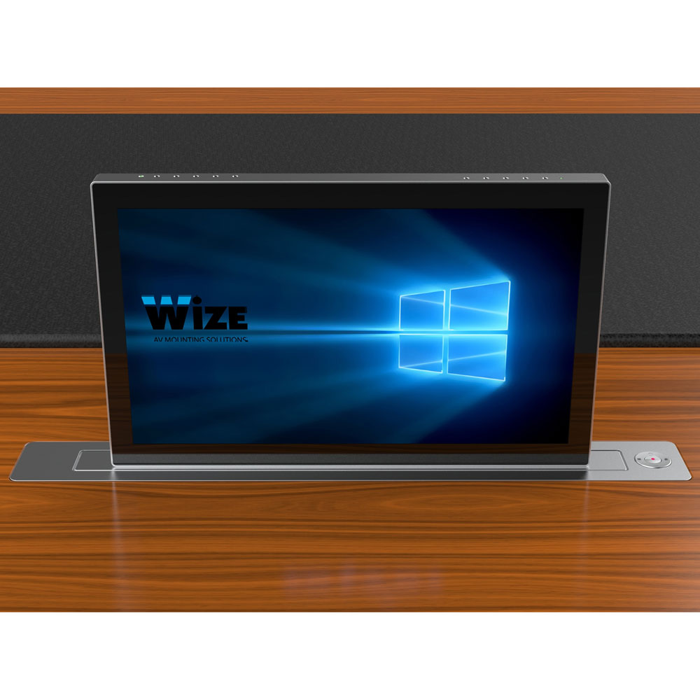 Выдвижной двусторонний монитор Wize WR-15B2 серии Bond Twin диагональю 15,6. Два монитора с разрешением Full HD 1920x1080 размещены спина к спине по отношению друг к другу в прочной алюминиевой раме. Есть возможность отображать разный контент на двух мониторах, что значительно экономит место и энергию. Тихий и долговечный мотор не отвлекает от переговоров. Три варианта цвета алюминиевой отделки: серебристый, черный и коричневый.