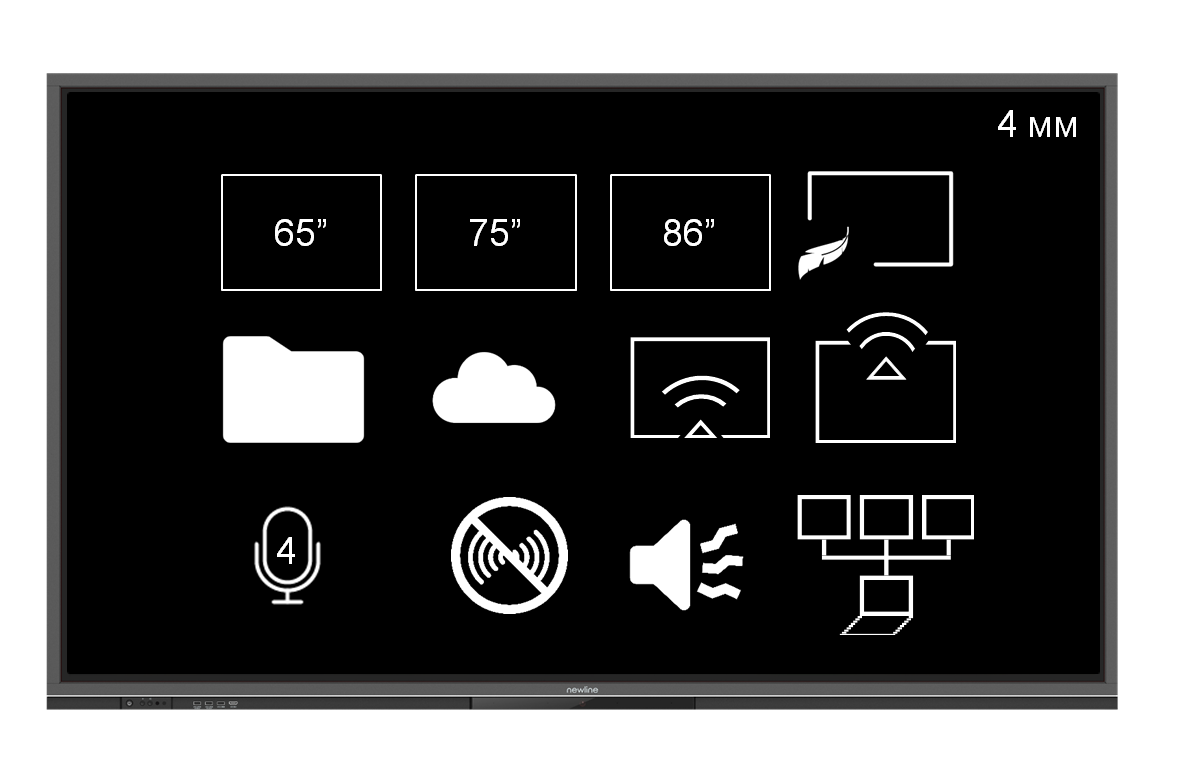 Считаете, что интерактивные панели массивны и несовременны? Только не Newline серии ER! Достаточно тонкий корпус и узкие рамки делают Newline ER похожим на телевизор или обычный профессиональный дисплей. Только гораздо функциональнее.