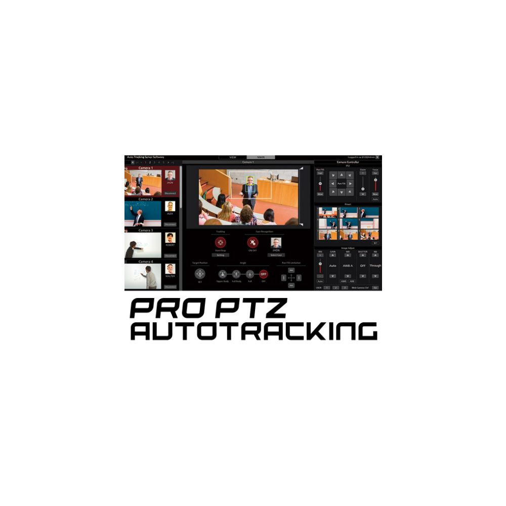 Ключевой особенностью SF200 является уникальная система интеллектуального отслеживания людей. Используя IP-видеопоток от поворотно-наклонных камер Panasonic, программа способна плавно вести камеру за перемещающимися объектами, обеспечивая фокусировку на докладчике или ведущем. Более того, ПО позволяет создавать "базу лиц" выступающих, что гарантирует максимальную точность и надежность отслеживания.