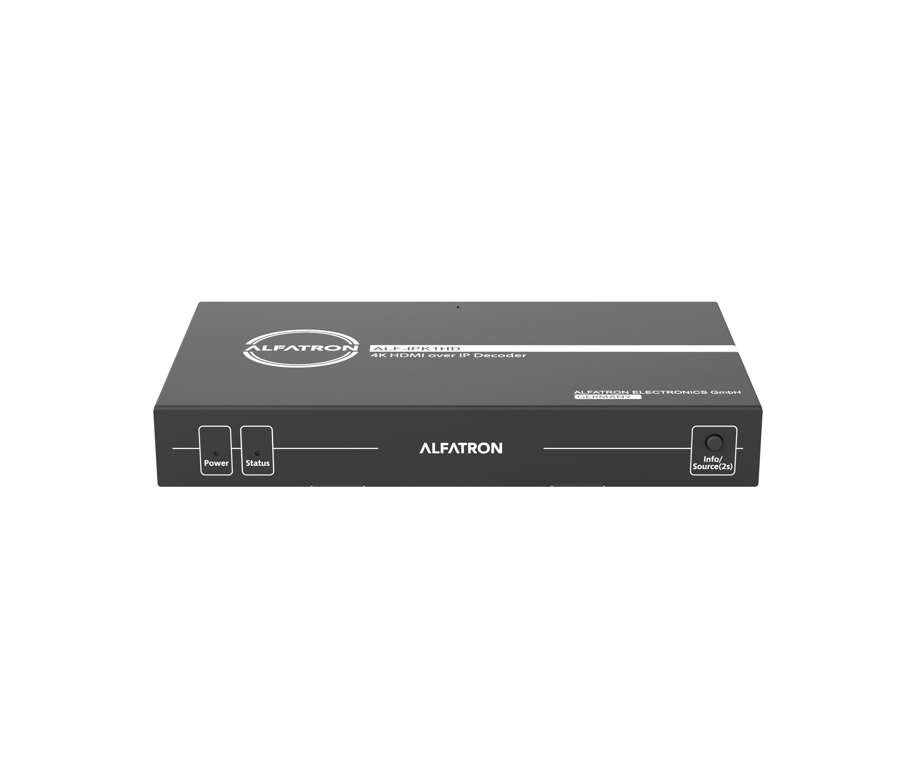 — это профессиональное декодирующее устройство, способное обеспечить прием и преобразование аудио- и видеосигнала, переданного по стандартной сети LAN, в высококачественный HDMI-сигнал, гарантируя бесперебойное воспроизведение и идеальную синхронизацию. Приемник ALF-IPK1HD станет надежным помощником для тех, кто ценит технологическую точность, совместимость и качество конечного сигнала.