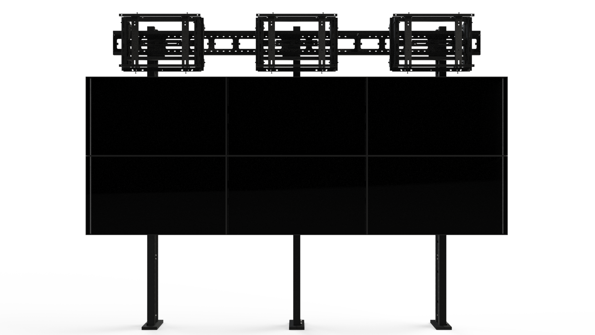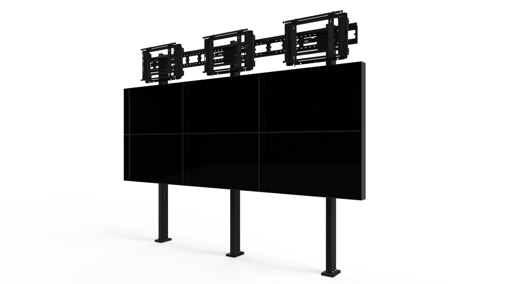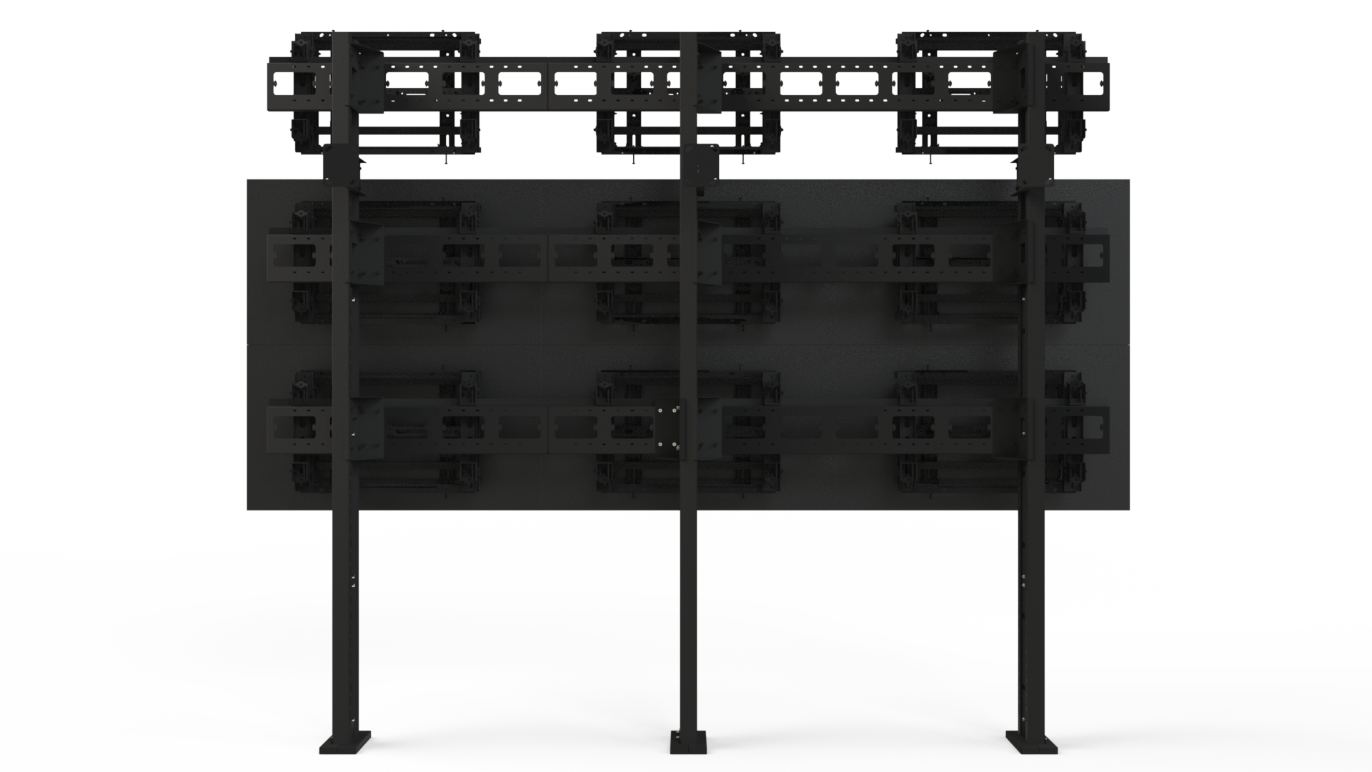 Напольно-настенная стойка с «PUSH»-кронштейнами - стационарный каркас с возможностью непрерывной регулировки высоты кронштейнов. Оснащен напольными и настенными креплениями. Являются комплектом для построения видеостен в случаях, когда невозможно применять только настенное крепление. Основное назначение комплекта - жесткое стационарное подвешивание видеопанелей с закреплением стойки на полу и на стене. «PUSH»-особенность кронштейнов обеспечивает легкий доступ к разъемам панели в условиях стесненного монтажа.