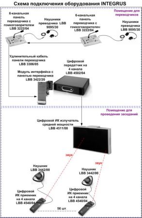 | Синхронный перевод на 2 канала с цифровой системой передачи звука по ИК каналу Integrus для 56 абонентов | |||||