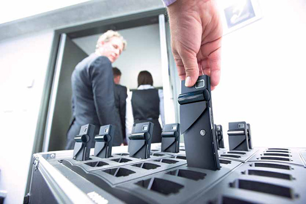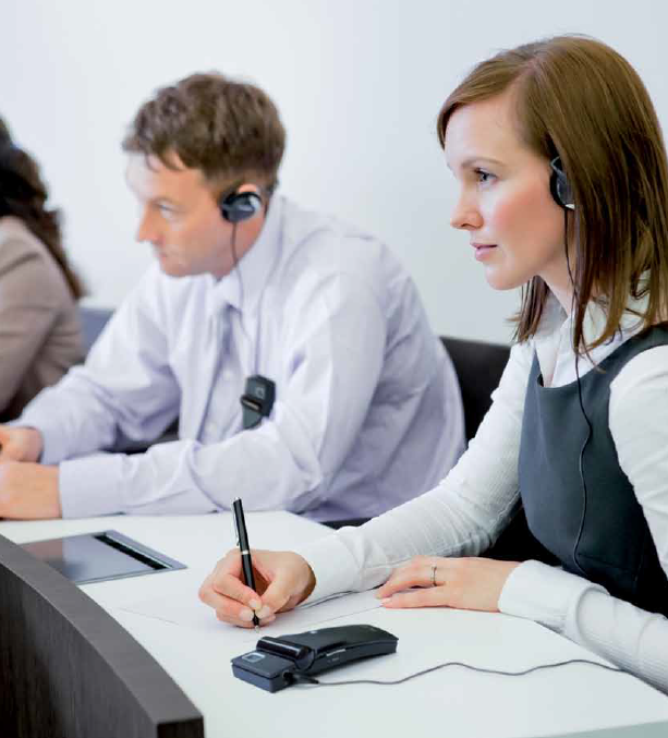 Участнику совещания выдается карманный приемник, который имеет линзу для собирания сигнала от излучателя на детектор. Сигнал с детектора передается в наушники делегата.