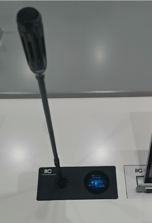 Встроенный моторизированный микрофон имеет 1,6-дюймовый сенсорный ЖК-экран и оснащен программным обеспечением для цифровой конференции.