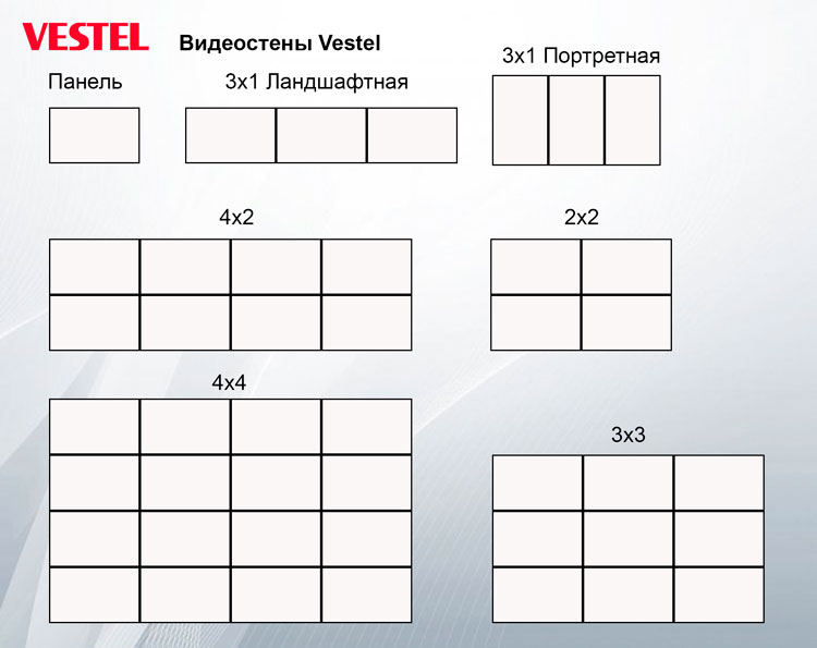 Профессиональные ЖК-дисплеи, объединяющиеся в единую структуру для распределения и/или объединения информации в формате изображений и видео.